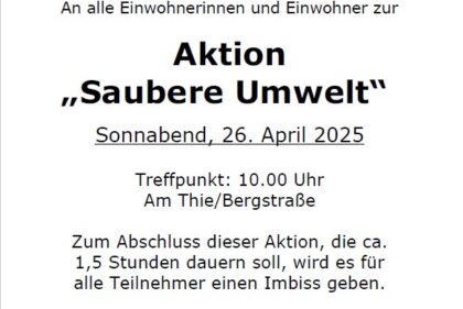 Groß Düngen AKTION saubere Umwelt – Am Samstag haben etwa 65 Teilnehmer aktiv dazu beigetragen, Groß Düngen ein Stück schöner zu machen. Es wurde eine große Menge an Müll gesammelt. Von Groß bis Klein, Jung und Alt waren alle hochmotiviert, auch die kleinsten Müllreste aus Groß Düngen zu entfernen. Ein herzliches Dankeschön an alle, die mitgemacht haben, insbesondere dem Team der Joseph-Müller Grundschule. Nach der Aktion wurden alle Teilnehmer zu einem kleinen Imbiss eingeladen. Es gab eine Vielfalt an Leckereien, vom klassischen Brötchen mit Feuerwehrmarmelade (Mett) bis hin zu selbstgebackenem Apfelkuchen war alles dabei. Für Getränke war ebenfalls gesorgt, und die kleinen Sammler konnten sich noch über ein paar Süßigkeiten freuen. Ein großes Dankeschön an alle Helfer und Unterstützer, die zum Gelingen beigetragen haben! 27. April 2025 1808 Uhr Parteiarbeit